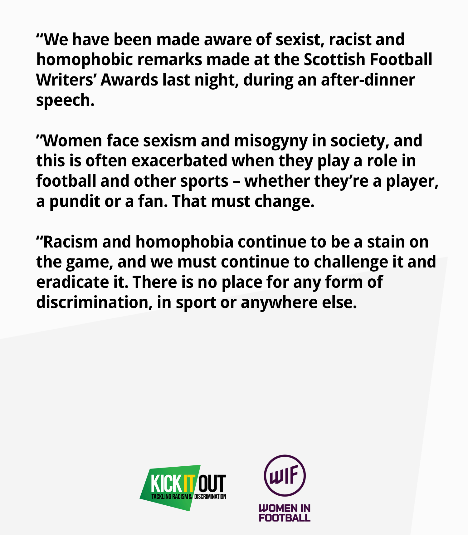 Twitter 上的women In Football Our Joint Statement With Kickitout On Events At The Scottish Football Writers Awards Last Night Https T Co 7dgrhzj3jd Twitter